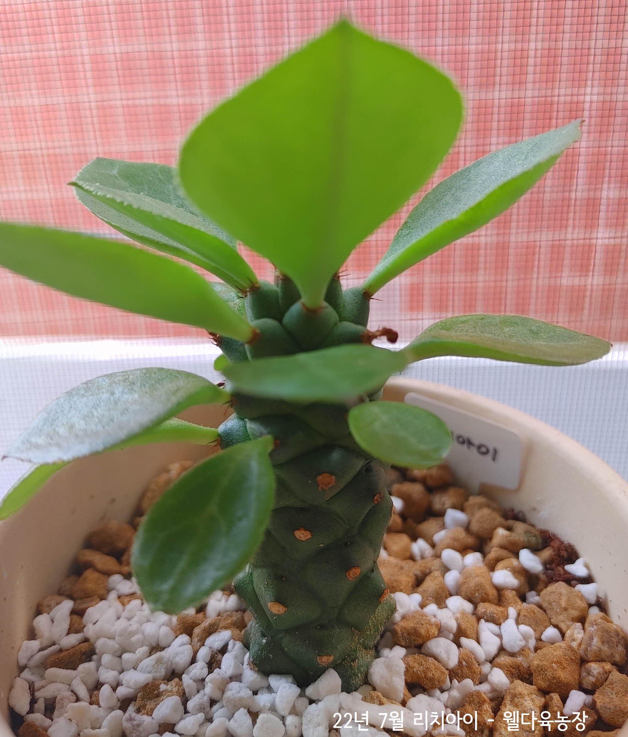 다육이 세계로 끌어들인 괴마옥과 닮은 모습에 눈길이간 리치아이는 괴마옥과 같은 유포르비아속으로 다른 다육식물처럼 섬세한 선들을 가지고 있습니다.