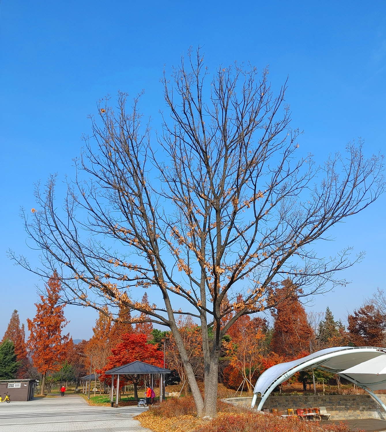 공연장옆 느티나무 거의 떨어지고 마지막을 향하는 잎새들